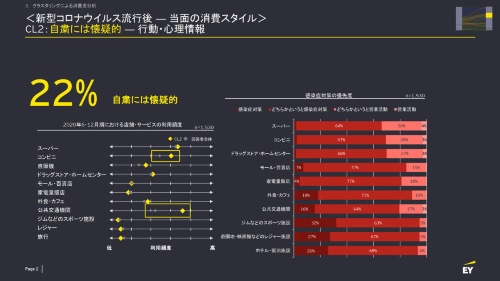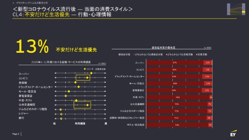 | [議論]データをどう読む? コロナ感染への不安で揺れる消費欲 - 日経ビジネスオンライン Posted: 11 Nov 2020 05:17 PM PST 全2248文字 新型コロナウイルス感染症の流行が続く"コロナ禍"において、消費者は今、企業に何を求めているのでしょうか。本シリーズでは、EYストラテジー・アンド・コンサルティングの調査データから、どのような消費者の行動変容が浮かび上がるか、読者の皆さんと考えていきます。私たちが提示する分析は、あくまでも1つの見方です。ぜひ、データを踏まえて皆さんの気づきや、データを裏付ける実体験、または、反論などをコメント欄にお気軽にお寄せください。有意義な議論ができることを楽しみにしております。 ![]() (写真:PIXTA) 新型コロナウイルスの流行以降、人々は新しい常識や習慣に適応しながら、徐々に日常を再構築しつつあります。しかし感染が再び拡大する傾向が見られるなど、依然として先の読めない状況は続いています。企業は感染拡大の状況や経済動向を注視しつつ、消費者の変化を考慮したビジネスシナリオを策定することが必要です。 私たちは、今後企業が消費者の支持を獲得するためには、コロナ禍が消費者の行動、心理をどのように変えたのかを解読することが不可欠だと考えました。そこで、7月に日本の消費者7000人を対象に独自の消費行動調査を行い、今後も消費者の生活や心理の変化にフォーカスした定点観測を続けていくことにしました。 本シリーズでは調査結果を基に、「消費者はどう変わったのか」「彼らが今、何を考えているのか」について、皆さんと一緒に考えていきたいと思います。毎回、最新データを紹介していきますので、お見逃しのないよう、ぜひシリーズをフォローしてください。 消費欲と自粛のはざまで揺れる人々パンデミックが続く中で、世界は言い知れぬ大きな不安で覆われています。ようやく人々の手に戻りかけたかに見えた日常生活は、元の形に回帰するのではなく、大きく再構築されようとしています。将来が見通せない状況の中で、生活費を節約しようと考えている人も多いでしょう。 しかし、人々の心にあるものは感染防止、自粛、節約などだけでしょうか。新時代を生きる消費者たちの思いはもっと多様で、複雑なはずです。リアルな消費者が今、何を考え、何に価値を感じているのかについて、大規模なデータを取り、かつ人々の属性や立場を考慮した分析が必要です。 そこでまず、消費者の行動や心理に関するデータを基に、クラスター(集団)分析の手法を用いて消費者を分類しました。 分析結果でまず印象的だったのは、日本全体にまん延する感染への不安の大きさが、データとしてはっきりと表れたことです。クラスター(CL)1~4、及び6に属する人々に共通する特徴は「感染に対して漠然とした、ないしは強い不安を感じている」ですが、こうした「感染不安層」とも呼ぶべき人々が消費者全体の88%を占めています。 元来、日本人は衛生に対する意識が高く、ともすれば「潔癖症的」とも言える気質があることは漠然と認識されてきましたが、ウィズコロナの状況下において、多くの消費者が感染防止を行動原理としているという事実を今あらためて認識する必要があるでしょう。 本分析では、消費者は6つのクラスターに分かれました。このうち特に興味深いのは、CL4「不安だけど生活優先」の人々です。 このクラスターに属する人々は、あらゆる店舗・サービスの利用において感染対策を重要視しており、ウイルスに強い恐れを抱いています。しかしその一方で、コロナ流行後も彼らが電車に乗ったり、コンビニエンスストアで買い物をしたりする頻度は、全体平均を大きく上回っていました。そこには感染に強い危機感を抱きながらも、通勤せざるを得ない、忙しい移動中にコンビニでの「ついで買い」をせざるを得ない、という心理と行動の矛盾が見て取れるのです。 他のクラスターにおいても、生活スタイルの変化や自粛要請に戸惑う複雑な消費者心理がうかがえます。例えば、CL2「自粛には懐疑的」の人々では、全体として企業に対しては感染症対策を「どちらかというと優先してほしい」と答えている人が多いのが特徴です。しかし、よく見るとスーパーやコンビニ、ドラッグストアといった身近な存在に対しては、「どちらかというと営業活動を優先してほしい」と思っている人の割合も少なくありません。 CL2の人々は、「どちらかといわれればウイルスは避けたいが、とはいえ大げさに消費を控える必要もないのでは」と、世間の自粛ムードに疑問を感じていると考えられます。 衛生的な環境を好み、ルールやマナーを重んじる日本人的気質と、外出や買い物に興じたいという消費欲の間で揺れながら、人々はそれぞれのニーズを一挙に解決してくれる消費手段を求めています。そのニーズを捉えるための行動が、企業には必要になっています。 6つに分かれた消費スタイルに柔軟に対応するためには、サプラ